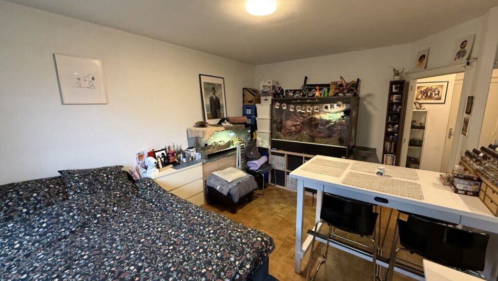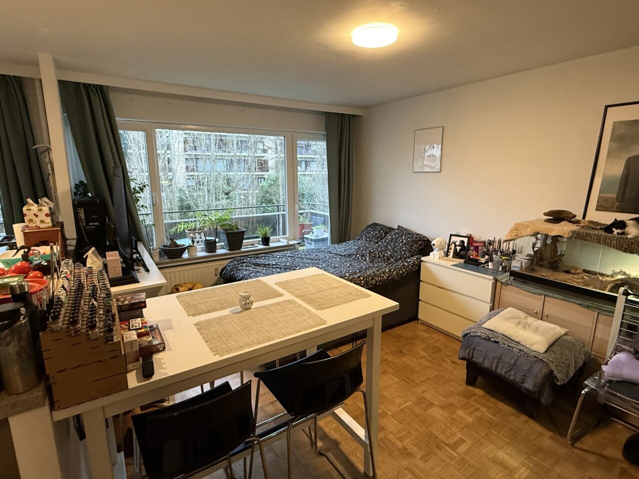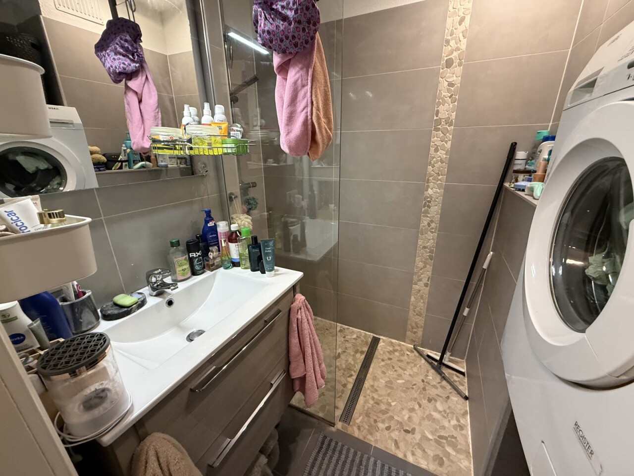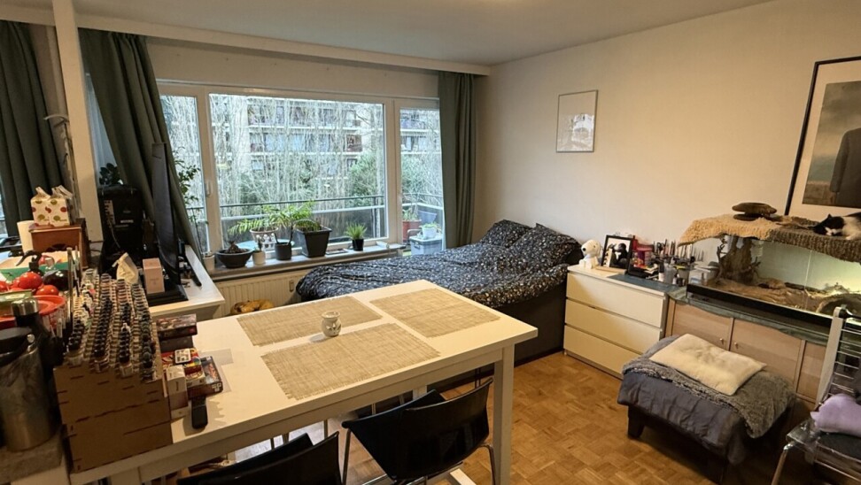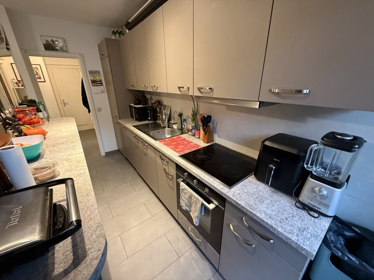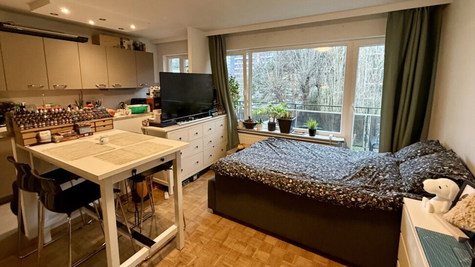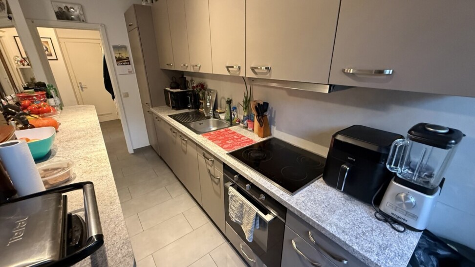 Le séjour d’environ 27 m² avec cuisine ouverte entièrement équipée constitue le cœur de l’appartement et bénéficie d’une belle luminosité naturelle. Il donne accès à une agréable terrasse d’environ 6 m² avec vue dégagée sur la verdure. La chambre dispose d’armoires intégrées. Salle de douche avec douche à l’italienne et WC séparé.