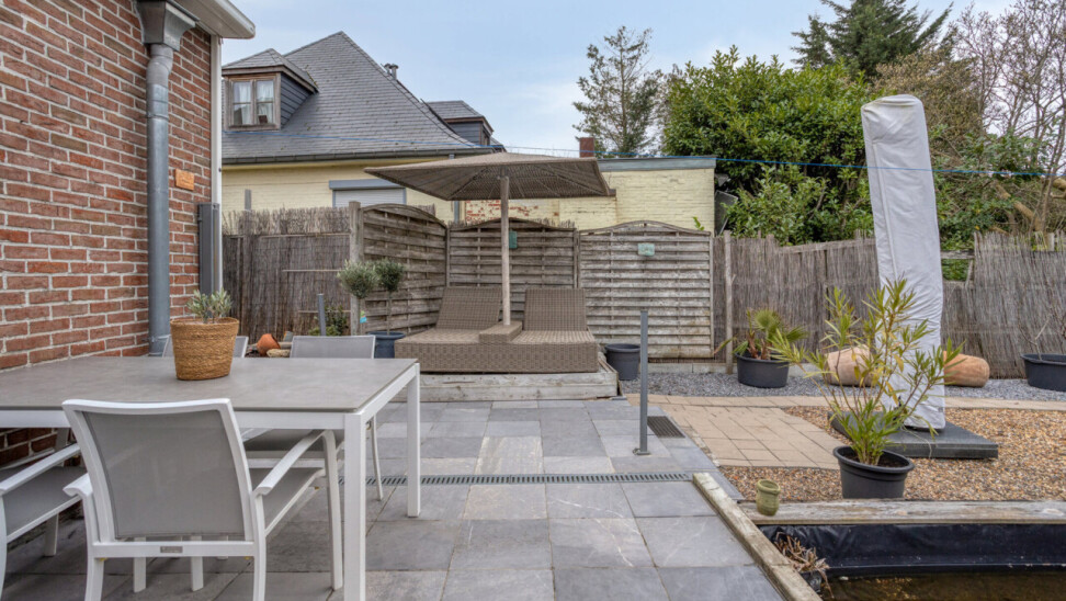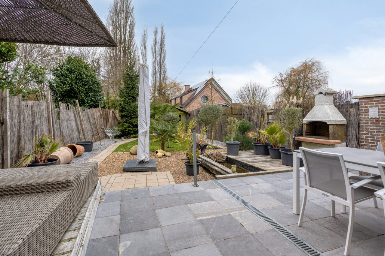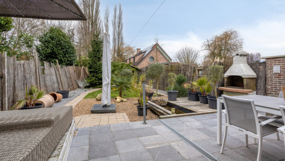 À l’arrière, vous profitez d’un jardin orienté plein sud avec plusieurs terrasses, un point d’eau et un agréable espace BBQ, idéal pour la vie extérieure et les soirées d’été conviviales. Le garage offre un espace de rangement et pour une moto et est équipé d’une douche supplémentaire.