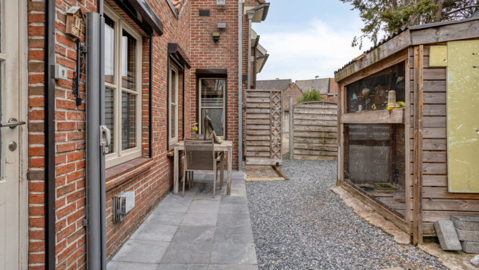 Située dans une rue calme à Erembodegem, cette maison semi-mitoyenne prête à emménager est implantée sur un terrain de 291 m². Elle se distingue par sa configuration spacieuse, ses espaces de vie chaleureux et son jardin soigné et ensoleillé.