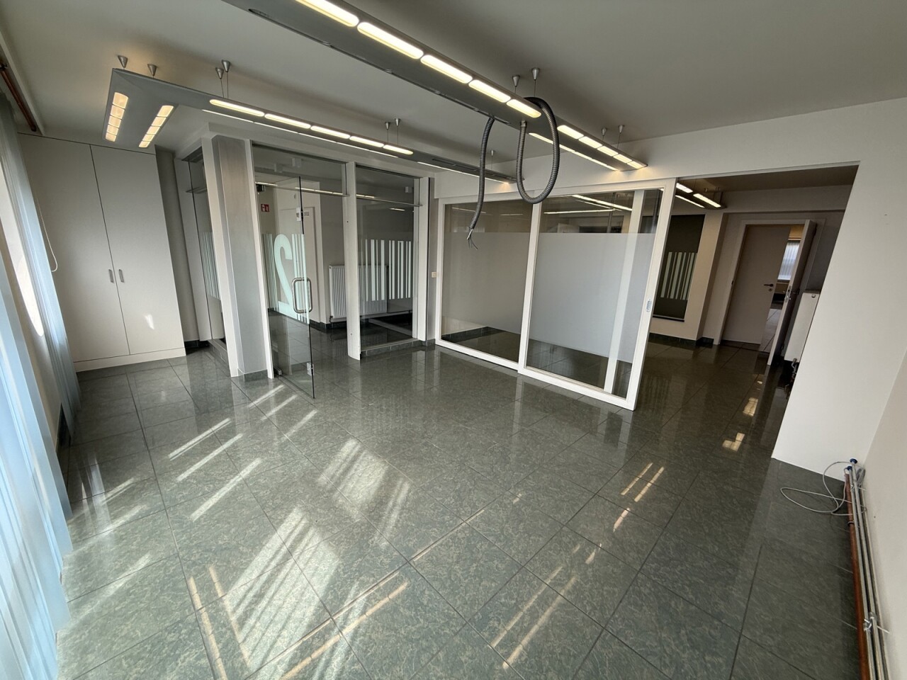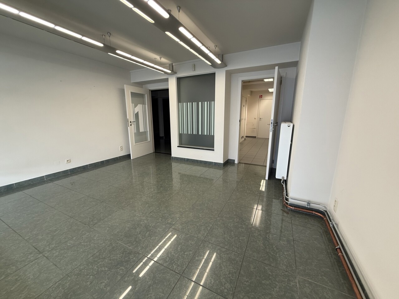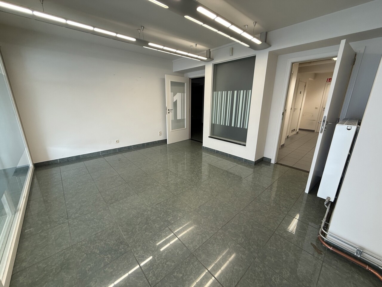 De ruimte beschikt over een bruikbare oppervlakte van ca. 175 m² en omvat een ruime onthaalzone, meerdere aparte burelen, sanitaire voorzieningen en een kitchenette. Dankzij de indeling is het pand onmiddellijk inzetbaar voor diverse activiteiten zoals kantoor, praktijk of dienstverlening.
