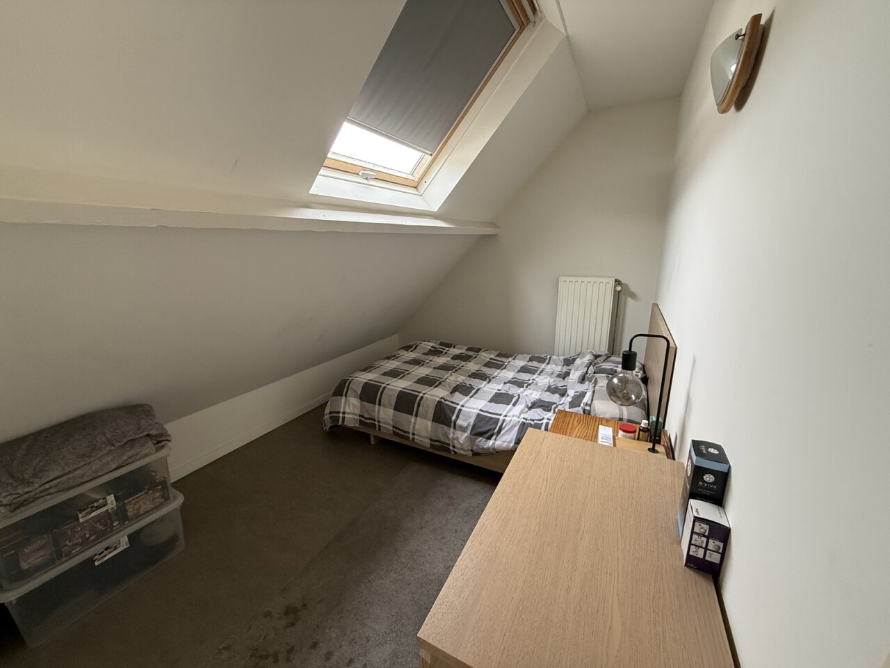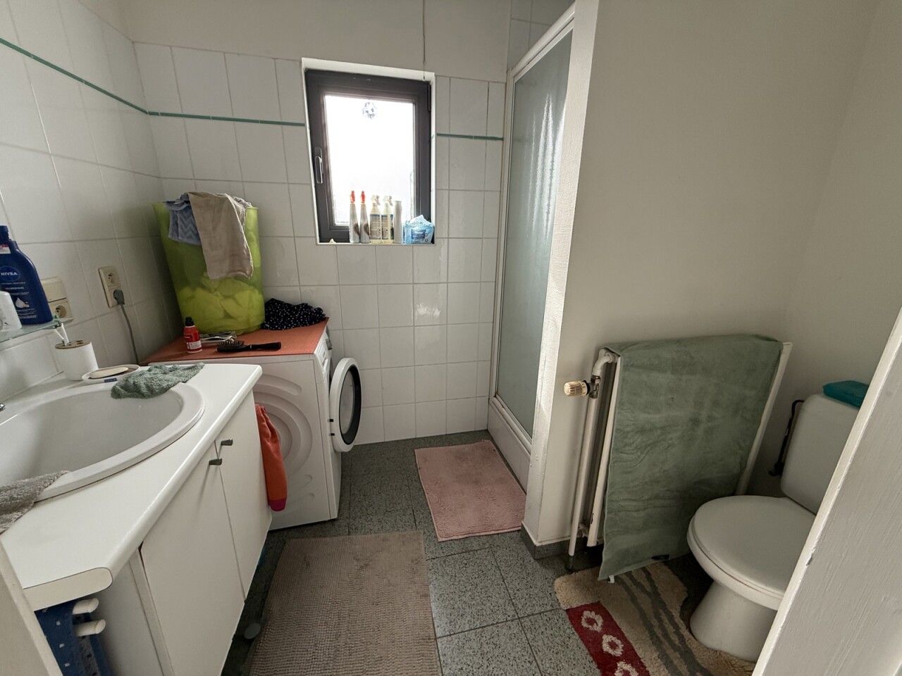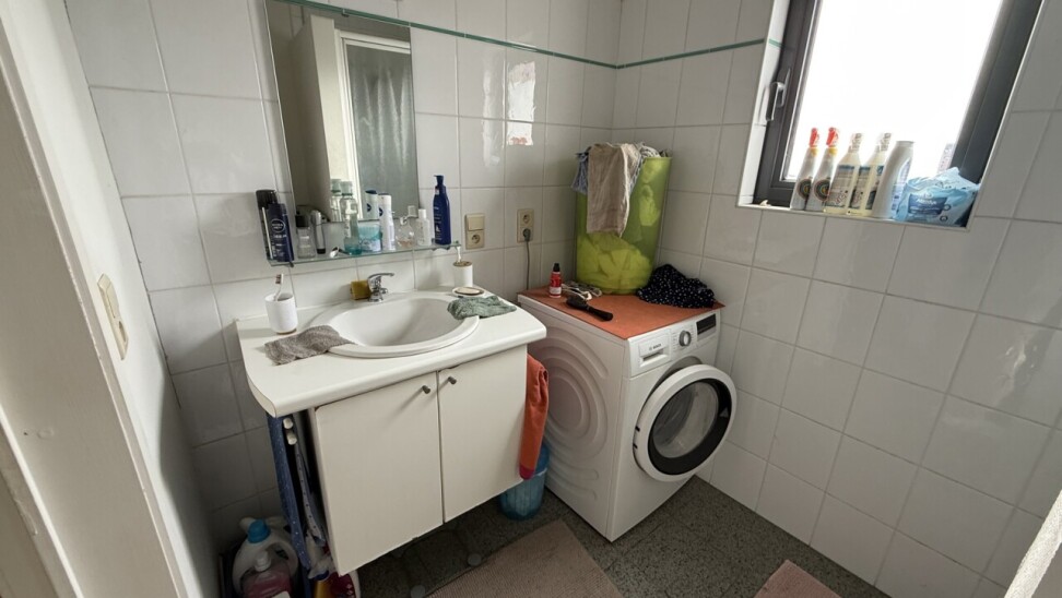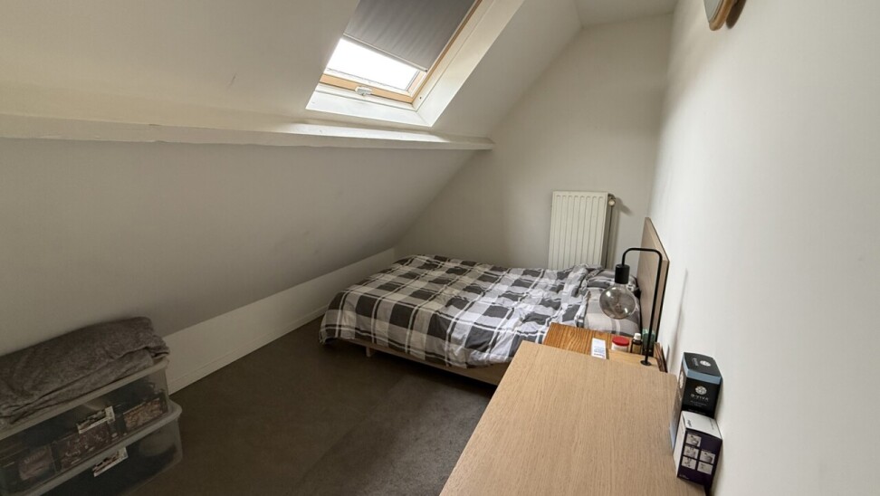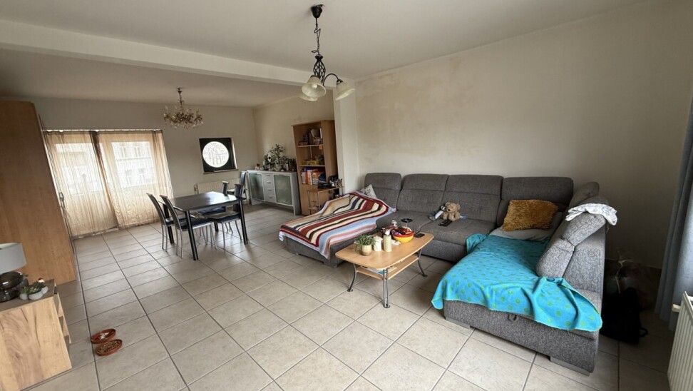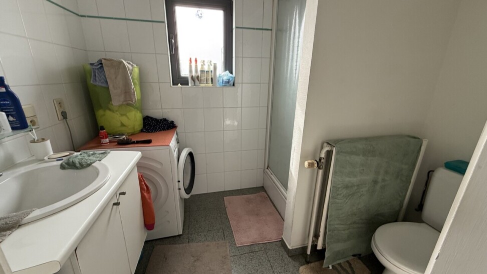 Het duplex-appartement is bereikbaar via een aparte inkomhal op het gelijkvloers. Op de eerste verdieping bevindt zich een lichtrijke leef- en eetruimte met aansluitend de keuken (dampkap, keramische kookplaat en oven) en een badkamer met lavabo, douche en toilet. Op de tweede verdieping zijn er drie slaapkamers (10 m², 11 m² en 13 m²), een gastentoilet en bergruimte. Het appartement is reeds enkele jaren verhuurd met een stabiele huuropbrengst van €805/maand.