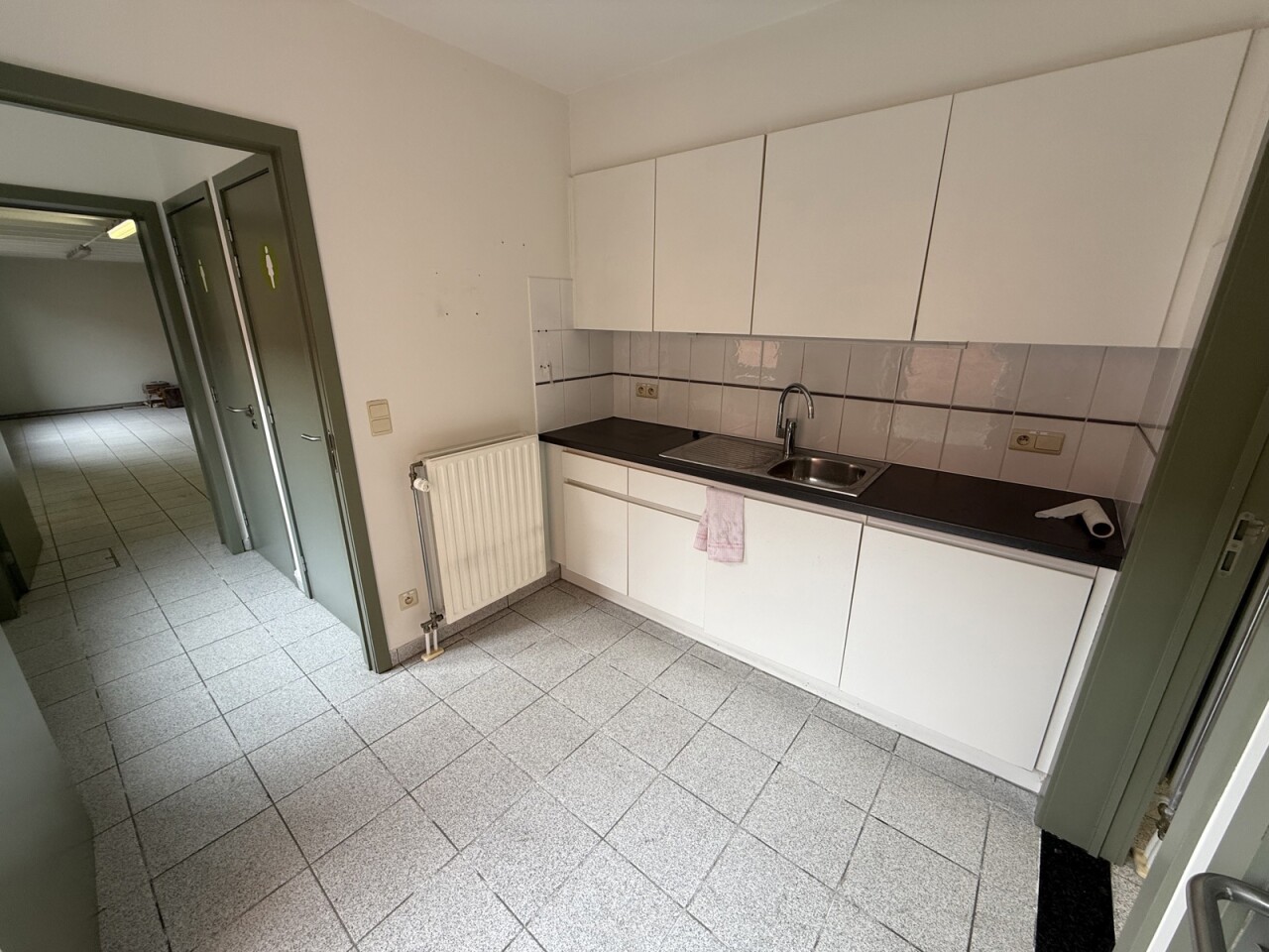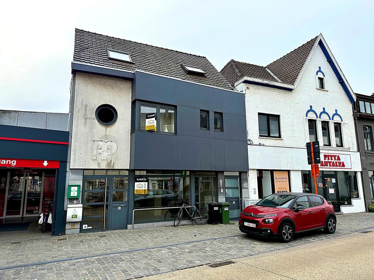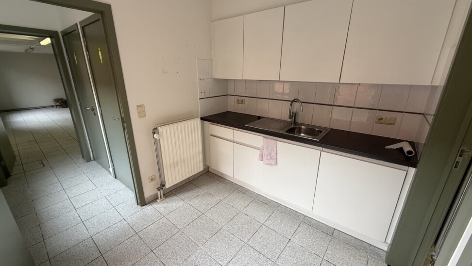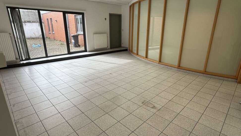 Op het gelijkvloers bevinden zich twee afzonderlijke handelsruimtes: het voormalige CM-kantoor (ca. 158 m²) en De Post (ca. 79 m²). De grootste unit beschikt over twee toiletten, een kitchenette en een buitenruimte (koer). De kleinere handelsruimte is voorzien van een kitchenette en een toilet. Ideaal voor eigen gebruik, verhuur of combinatie.